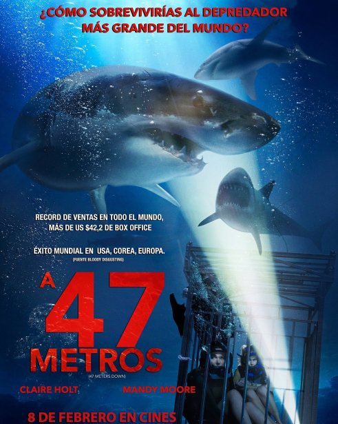 Te cuento de qué trata: dos hermanas viajan a México en busca de diversión, queriendo disfrutar de unas vacaciones juntas. Conocen a dos a chicos que le proponen sumergirse en una jaula para ver tiburones. Lisa, la hermana mayor no está muy convencida, pero Kate la convence. Se sumergen en el océano y lo que tendría que ser una gran experiencia, se convierte en la peor pesadilla de sus vidas. Deben encontrar la manera de sobrevivir con menos de una hora de oxígeno y poder llegar a la superficie, a través de 47 metros, rodeadas de tiburones blancos.