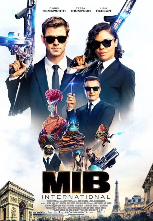 Hombres de Negro: Internacional (Men in Black: International, 2019) es una comedia de ciencia ficción y acción dirigida por F. Gary Gray. Co-escrita por Matt Holloway y Art Marcum, funciona como spin off de la saga que conocimos gracias a Will Smith y Tommy Lee Jones . En esta oportunidad, protagonizada por Chris Hemsworth y Tessa Thompson, el reparto se completa con Rebecca Ferguson, Rafe Spall (Black Mirror), Liam Neeson, entre otros. Emma Thompson vuelve a interpretar a la Agente O, aunque su tiempo en pantalla es mínimo.