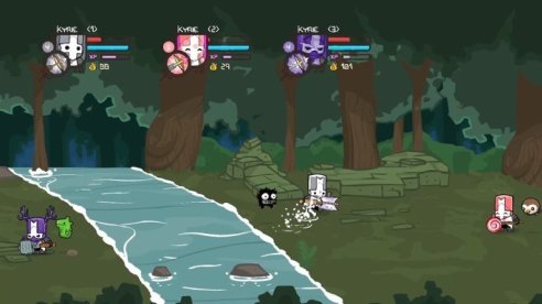 Análisis de Castle Crashers Remastered para Nintendo Switch de The Behemoth El Noble caballero montado sobre un ciervo con diarrea dispara un Arcoiris a sus enemigos…