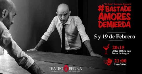 Miércoles 19 de Febrero a las 21 hs, acudí al Teatro Regina, para la función de la obra #Basta de Amores de Mierda del Pela Gonzalo Romero, quien promete mucho más que un monologo, una propuesta donde rompe con la cuarta pared, y habla de lo que muchos quieren hablar pero no se animan que es #Basta de amores de Mierda.