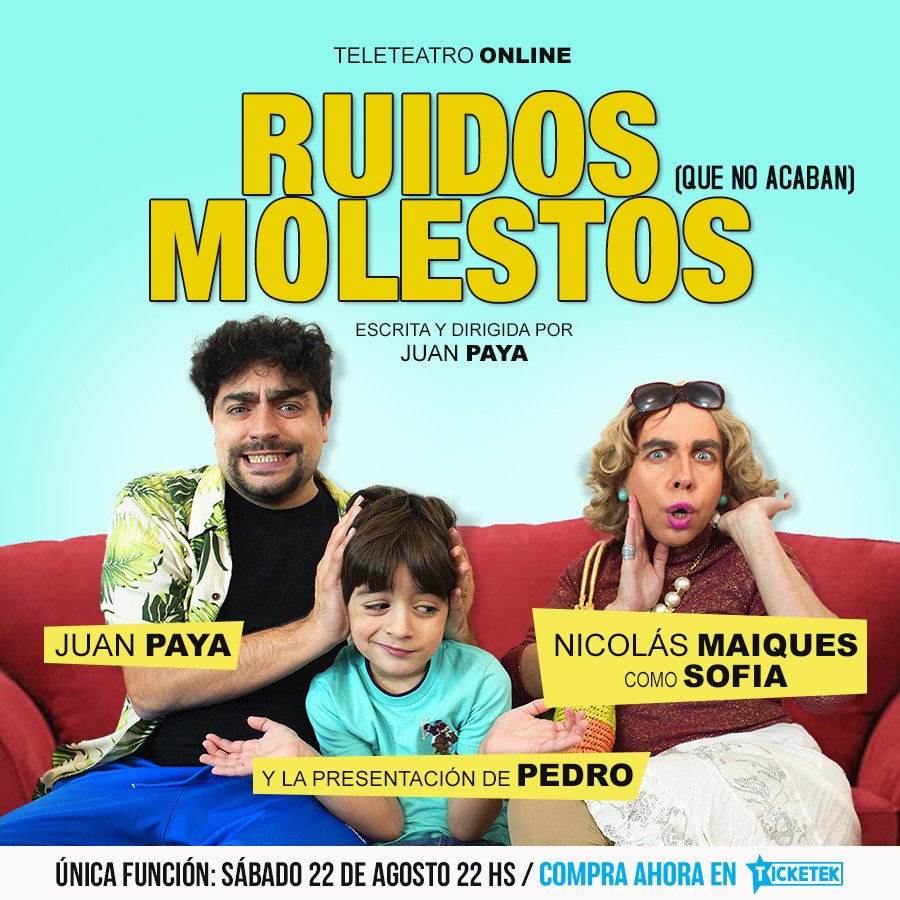 Excelentes, es lo que puedo decir por ser su primera vez en incursioar en el mundo virtual del streaming. El escritor, actor y director Juan Paya , junto al actor Nicolás Maiques, y con el debut de Pedro Paya, de 5 añitos, hijo de tigre, vienen con la obra Ruidos molestos.