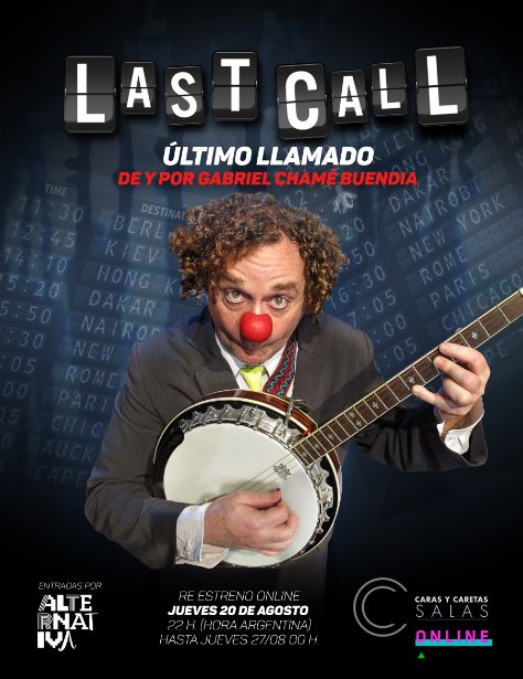 LAST CALLÚLTIMO LLAMADO, se reestrena on – line, desde el jueves 20 de agosto a las 22hs hasta el jueves 27 de agosto. Las entradas pueden ser adquiridas desde Alternativa Teatral.