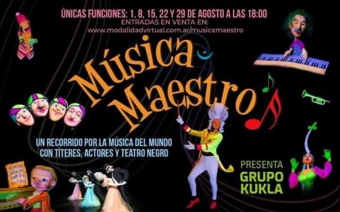 Con guion, puesta en escena y dirección de la tiritera ANTOANETA MADJAROVA pertenecient al grupo Kukla, después de estar cinco temporadas en el Centro de la Cooperacioin Floreal Gorini, es lógico que extrañe a su público y quiere estar presente con su pieza Música Maestro, vía streaming, para que pueda llegar a ser vista por la familia, en el living de casa.