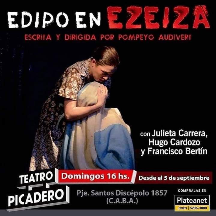 Edipo en Ezeiza está disponible los domingo a las 16 horas en el Teatro Picadero (Pasaje Enrique Santos Discépolo 1857) Escribió Sebastián Arismendi para la Butaca Web.