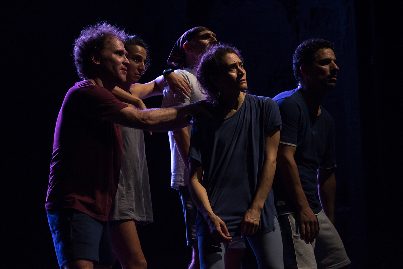 Cinco intérpretes ocupan la sala del Portón de Sánchez, solamente con su cuerpo y palabra, con el propósito de transitar los diferentes estadíos de la historia nacional y llegar a una inalcanzable meta final.