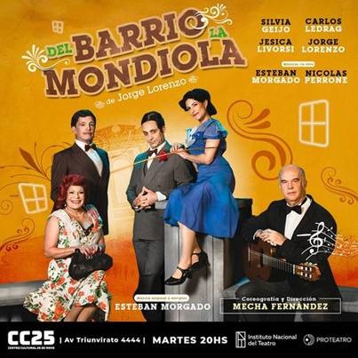Silvia Geijo, Carlos Ledrag, Jesica Livorsi y Jorge Lorenzo forman parte del elenco de esta divertida comedia musical. Con una enorme carga de lunfardo y referencias culturales al Buenos Aires de antaño, esta obra transita por la comedia musical y lo onírico. El texto de Lorenzo a primera instancia parece simple pero tiene giros de tuerca interesantes, la historia se va complejizando con un mensaje muy tierno al final. Los actores realizan una excelente presentación ya que no solo actúan, bailan y cantan tango. Toda esta alegría y talento lo transmiten al público que estará sometido a carcajadas y suspiros.