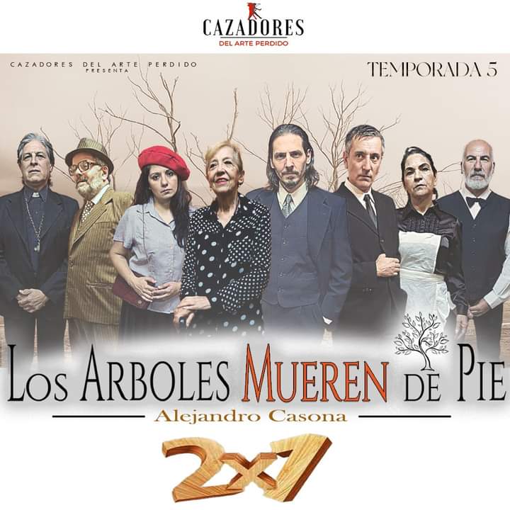 ¿Quién se ocupa de los males del alma? es una de las interrogantes que Alejandro Casona se lo pregunta, una y otra vez, en la escritura de su obra teatral “Los árboles mueren de pie”. En esta ocasión, el director Miguel Ángel Spano se atreve a representar estos diálogos apasionados y desafiantes junto al grupo teatral “Cazadores del arte perdido” integrado por: Veronica Brown, Claudio Bustamante, Ricardo Delgado, Marta Hermosilla, Fabián Mattos, Sebastián Rapacini, Ariel Ruiz Diaz y Carolina Vargas. Le dan vida a estos personajes, le brindan sentido a estas historias que nos conmueven y emocionan por sus semejanzas que comparten con la vida real. “Los árboles mueren de pie” se presenta todos los domingos de junio y julio a las 16 hs en el Teatro “El Bululú” de la calle Rivadavia 1350.