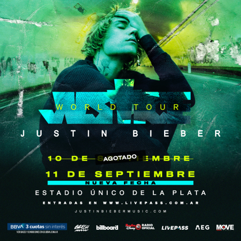 Justin Bieber quien ya se encuentra apto y bien de salud anunció hoy que su gira Justice World Tour seguirá adelante como estaba planeado. Tras casi diez largos años de espera, Justin Bieber regresa al país con un nuevo y mega show, nuevas canciones el próximo 10 de septiembre (Agotado) y 11 de septiembre de 2022 en el Estadio Único de la Plata, Argentina.