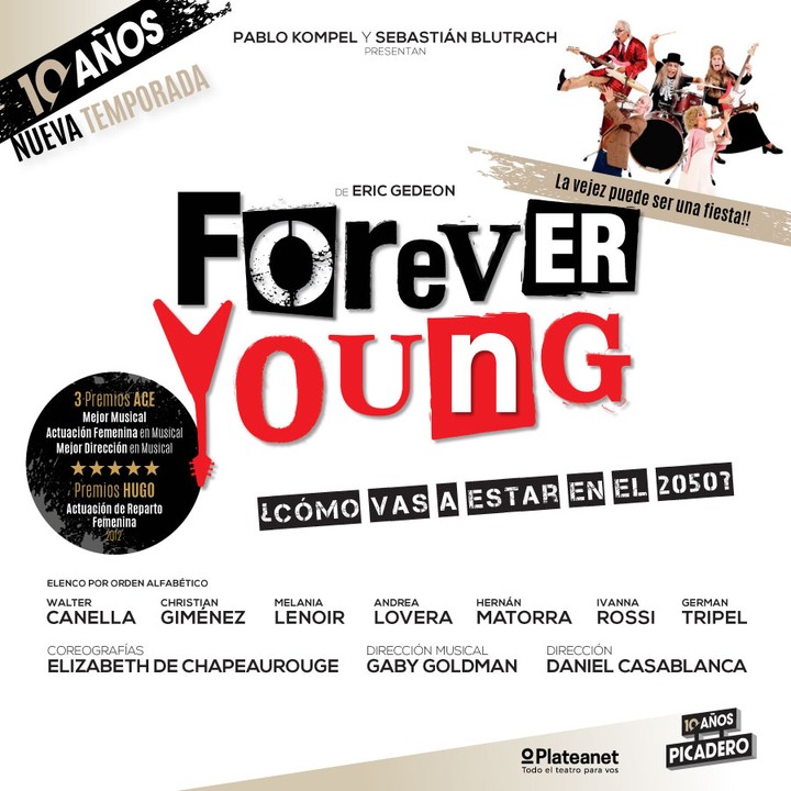 Walter Canella, Melania Leloir, Christian Giménez, Ivanna Rossi, German Trippel, Andrea Lovera y Hernán Matorras forman parte del elenco de la historia interpretando a si mismos en unos 30 años en el futuro. Adaptada por Paco García, Carles Mens, Joan Gracia y Pablo Kompel, la obra de Daniel Casablancas es un divertido y enérgico musical lleno de nostalgia y reflexiones.