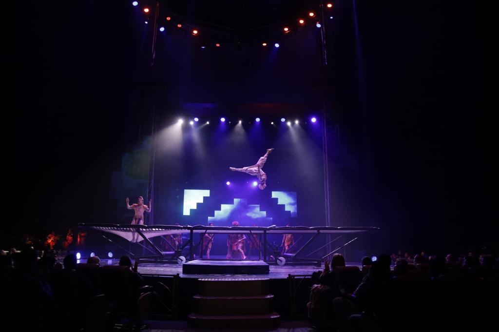 Puede marear un poco lo que digo, pero también la realidad es que este espectáculo está perfectamente organizado y cronometrado. Al ingresar al estadio, todos nos ubicamos en el campo, no importa en el sector donde nos encontramos porque en cada rincón hay una actividad en la que en algún momento lo podremos observar más de cerca. Una especie de pecera aparece por el techo, dónde vemos un número perfomatico muy interesante, dónde todos podemos capturar el momento con nuestros celulares. El panorama cambia totalmente y es así como mirando hacia un lado, tenemos música, artistas bailando y una lluvia de papeles mientras se agita al público a seguir este ritmo frenético con el que se comienza. De un momento para el otro, ese espacio se desvanece, y al otro extremo nos encontramos con una DJ, con juego de luces y un gran ventilador, aquí todos se ponen a saltar y bailar. Después, una carpa nos tapa a todos y empieza a verse un juego de luces. La gente presente también tiene la posibilidad de participar, se la invita a bailar, a ponerse arnés y subir hacia al techo al ritmo de la música y las luces que acompañan.