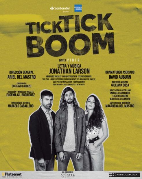 Tick tick boom! Es el musical autobiografico de Jonathan Larson, escrito durante su etapa de crisis creativa se dio cuenta que mejor que inventar una historia de fantasía o ciencia ficción, era mejor hablar de su vida y las cosas que conoce. Así es como establece sus relaciones más cercanas: su novia, su mejor amigo y su vida.Marcelo Caballero, Lucien Gilabert y Juan Pablo Schapira forman parte de la adaptación argentina de este clásico que se vuelve a presentar en Calle Corrientes.