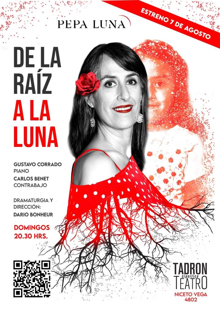 Hace unos años tuve la oportunidad de ver en escenario a Pepa Luna en el espacio de La Botica del Ángel, dónde se pudo apreciar no solo una bella voz, sino a una artista que derrocha carisma y sentimiento por lo que hace. De la raíz a la luna funciona como una obra autobiográfica y un espectáculo musical que recorre la vida de Pepa Luna desde su niñez en España hasta llegar como una artista a Buenos Aires. Una obra con un recorrido más que interesante, agregado al talento y la gran presencia escénica que nuestra protagonista nos ofrece en un espectáculo único.
