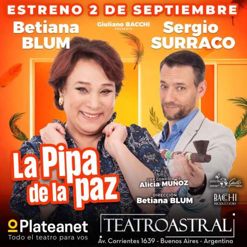 Sergio Surraco es el acompañamiento perfecto al personaje de Betiana, está entre el borde de perder la paciencia, por lo que lo veremos maniobrar la mil y una formas de obtener la paz y comunicación. La Pipa de la Paz es una comedia que no nos suelta y nos hará reír desde el principio. Una producción prolija y bien dirigida por la visión de Betiana Blum. Un reflejo de las relaciones madre e hijos donde uno de los dos debe ceder, ¿Funcionará la pipa?