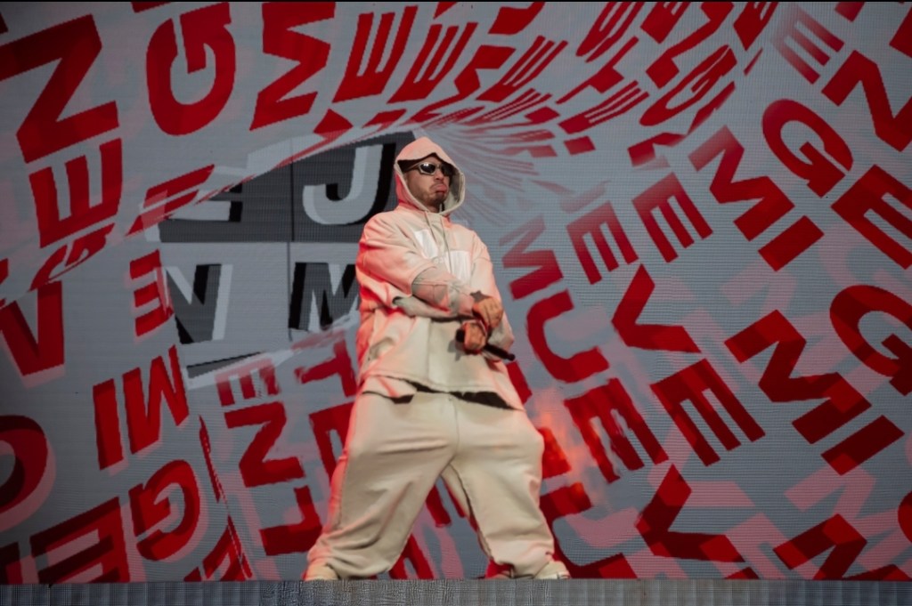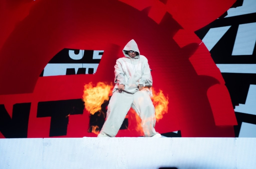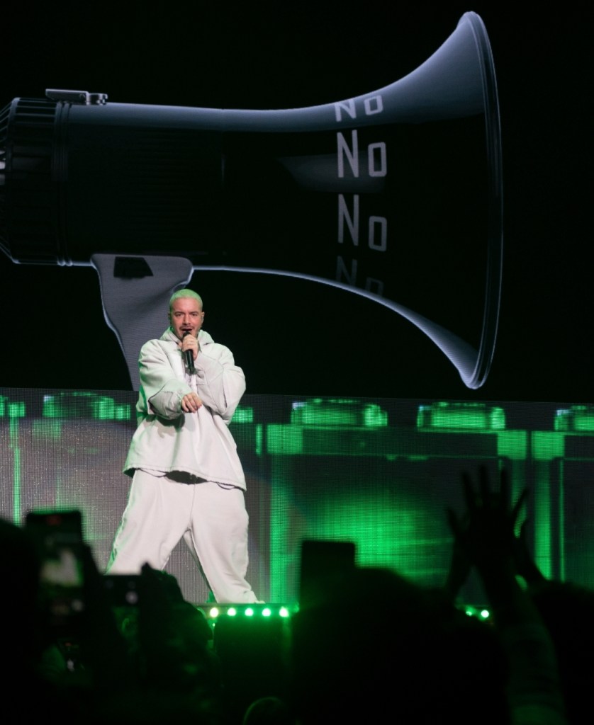 La temática también se hizo presente, a través de un tramo del recital, el artista dedicó unos minutos a su disco «Colores» con una presentación audiovisual muy interesante con temas como «Amarillo» «Rojo» «Morado». Luego se dedicó unos minutos al disco que hizo junto a Bad Bunny en el que se destacaron canciones como «Que pretendes» «Yo le llego», entre otras. Hablo también sobre la alegría de encontrarse en Argentina, lugar al que viene más allá del tema de conciertos, ya que como dijo, tiene un hijo argentino, un niño llamado Río junto a la modelo cordobesa Valentina Ferrer.