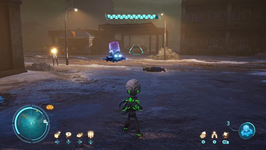 También contaremos con algunos jefes finales que nos pondrán las cosas bastante difíciles puesto que la curva de dificultad no está bien ajustada. Respecto del apartado gráfico se trata de un título con unos entornos y personajes de estética cartoon bastante coloridos y divertidos. Por lo que respecta al apartado sonoro cuenta con una buena variedad de efectos y con algunos chistes realmente hilarantes donde se nota que los guionistas del título original querían hacer un homenaje a las películas de ciencia ficción de los años 50. Cabe mencionar que la historia no ha envejecido todo lo bien que debiera y esto hace que algunas situaciones resulten desfasadas y la repetición de enemigos nos haga perder interés según avancemos. Otro detalle a mejorar es la inteligencia artificial de los enemigos que nos permite avanzar sin muchas dificultades durante toda la aventura. Como detalle positivo cabe mencionar que contamos con un modo cooperativo local a pantalla partida para poder jugar con un amigo y destrozar todo lo que plazca (edificios, humanos, etc). En resumen podemos decir que se trata de un videojuego correcto que hará las delicias de los amantes del título original pero que cuenta con ciertas limitaciones que puede hacer que los jugadores más actuales rehúsen probarlo.
