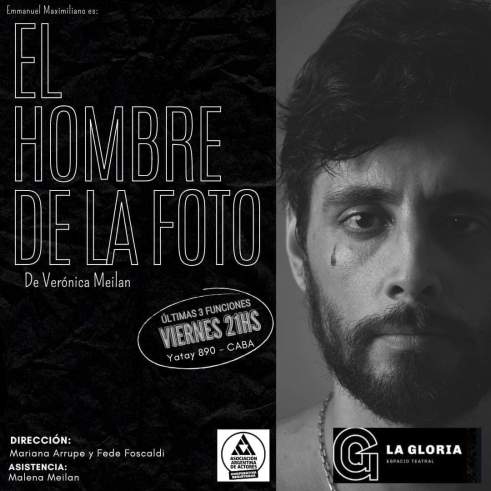 El hombre de la foto es una muestra condensada de muchos males del hombre, su orgullo y su encierro. Un Emmanuel solido en un melodrama intimo y honesto. Disponible los viernes a las 21 horas en el Espacio La Gloria (Yatay 890)