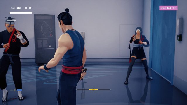 Por último, tenemos una barra de equilibrio, que se llena a medida que recibimos golpes. Si esta llega a saturarse, nuestro personaje se tambaleará y quedará a merced de los malos, así que es prudente alejarse de vez en cuando para que el equilibrio se restaure solo. Aunque nuestros puños y patadas son cruciales, también iremos encontrando armas que dan pie a movimientos únicos y causan más daño, como bastones, armas blancas u objetos de un solo uso tales como botellas. Podemos usarlas en el cuerpo a cuerpo o bien arrojarlas para golpear por sorpresa. Todo esto ya hace que los combates tengan mucha miga de por sí, pero aún no hemos entrado en el aspecto más original de Sifu: el envejecimiento. Si nos golpean demasiado, nuestro personaje muere, pero podemos hacer que resucite en el mismo sitio gracias a un misterioso poder.