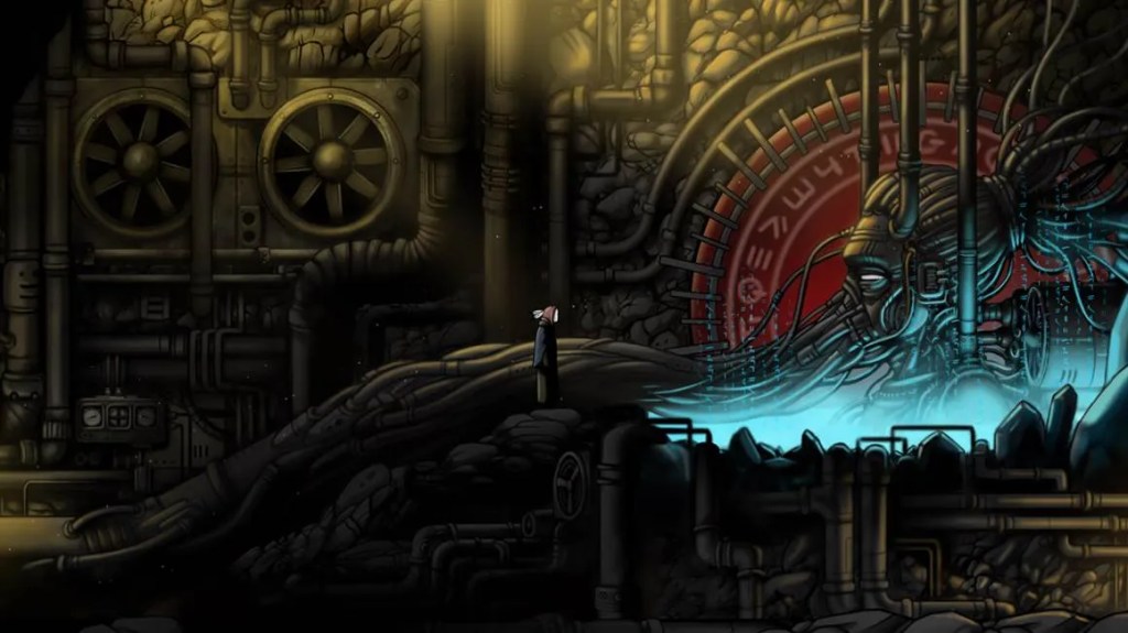 En su gameplay te moverás por el mundo desplazándote de izquierda a derecha, con un poco de verticalidad , desbloqueando nuevos caminos y secretos al estilo Metroidvania. El Buscador es una construcción frágil, fácilmente aniquilado con un solo golpe por el fuego enemigo y los obstáculos, por lo que se deberá estar al tanto con la plataforma y el sigilo, teniendo que agacharse y esconderae detrás de escondites resaltados. Los guardias aún pueden escucharte en estos casos, pero si te dan un espacio lo suficientemente amplio, puedes escabullirte hasta tu próximo escondite designado y esperar a que tus enemigos pasen. Si bien su gameplay es interesante, nos pasa algo con su aspecto Metroidvania, que a veces las pistas o están bien escondidas o son nulas por los que nos dificulta avanzar y puede llegar a la frustración.