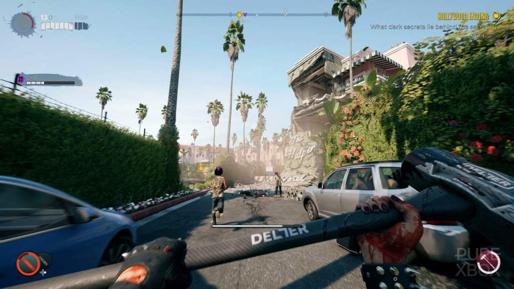 De la misma forma que en sus anteriores entregas, en Dead Island 2 se ha decidido evitar el mundo abierto. Alejándose del camino seguido por Dying Light (hasta ahora, el sucesor espiritual de la franquicia), avanzaremos por recintos cerrados, cada uno de ellos totalmente independiente al resto. Cada región de la ciudad contará con sus propias misiones, principales y secundarias, entornos, personajes y secretos. A cambio de esta decisión, nos encontramos con escenarios manejables, que evitan que el jugador pueda sentirse excesivamente abrumado y consiguen a la vez animarle a explorar, ofreciendo como recompensa nuevas y más poderosas armas principalmente.