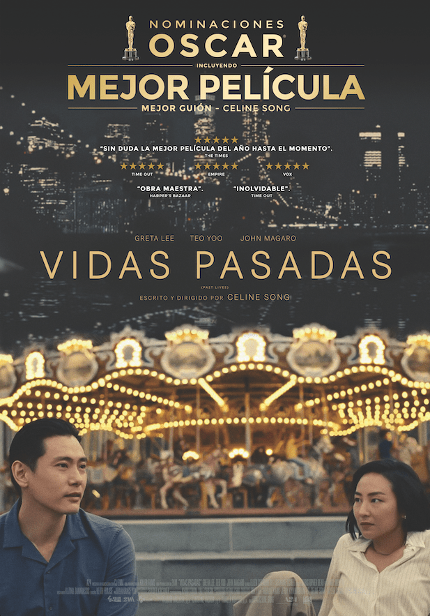 Vidas pasadas dirigida por Celine Song, es una película que explora temáticas como el amor, los reencuentros, el destino y las decisiones que tomamos durante nuestras vidas. La historia gira en torno a la relación entre Nora (Greta Lee) y Hae Sung (Teo Yoo), dos amigos de la infancia que se separan cuando la familia de Nora emigra de Corea del Sur a Canadá. Tiempo después, retomarán el contacto, casi por casualidad, en donde se enfrentarán a sus sentimientos pasados y a las diferentes vidas que han construido.