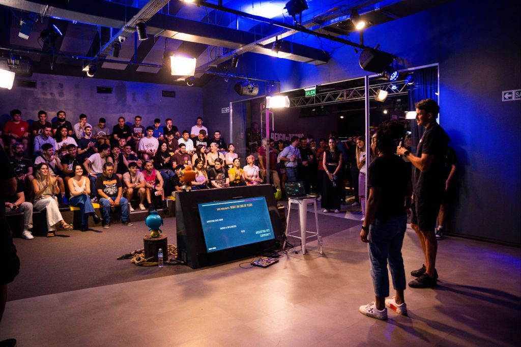 Lo mismo ocurre a nivel espacial. Todo se sitúa en el gimnasio del Liceo. El escenario no tiene bambalinas, los actores se acomodan en los costados, están todo el tiempo presentes, todo el tiempo mostrando el artificio.