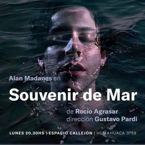 La pieza teatral Souvenir de Mar, escrita por Rocío Agrasar y dirigida por Gustavo Pardi, es un unipersonal protagonizado por Alan Madanes. Nos sumerge en un viaje introspectivo de recuerdos y emocionales ligados a ese primer amor que desborda y nos lleva por delante sin darnos cuenta. Este montaje intimista revela, a través del único personaje en escena, un mundo de nostalgia y anhelos, donde el concepto de Mar se convierte en un símbolo de libertad y de conexión con algo (o alguien) más profundo y perdido en el tiempo.