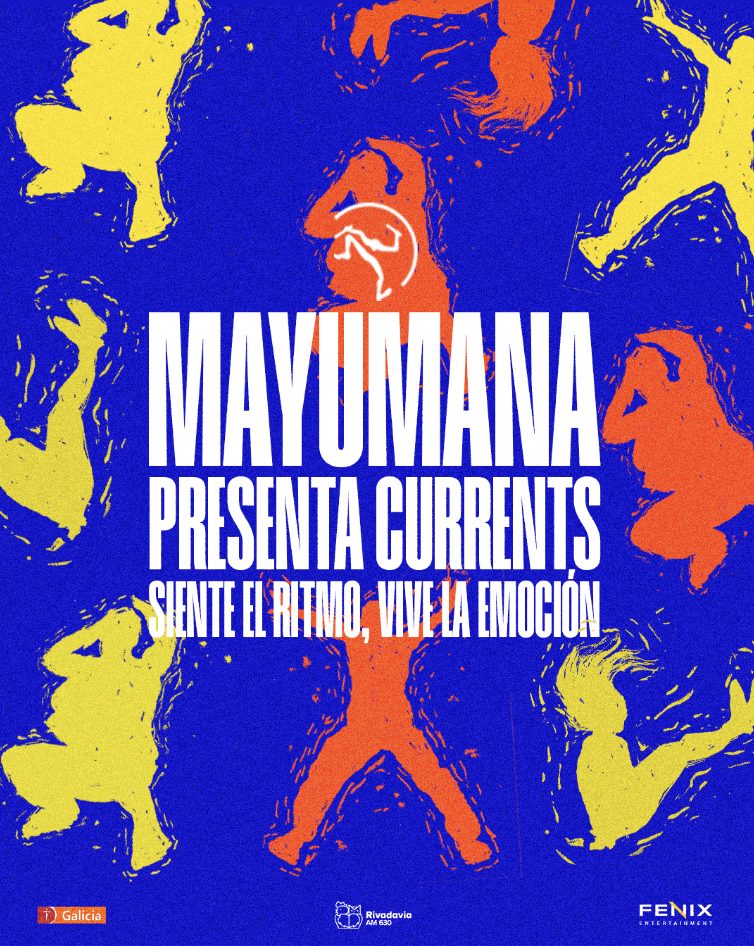 Currents es un espectáculo que combina música en vivo, percusión, danza, humor y acrobacia. El estreno de prensa con alfombra roja se realizó en el Teatro Broadway y conto con reconocidos artistas del mundo del arte y espectáculo como Graciela Alfano, Anamá Ferreira y José María Muscari. Tras recorrer más de 40 países, Mayumana se presentará en Buenos Aires, todos los miércoles de julio. Ocho artistas en escena con elementos simples como tubos de PVC, tachos de basura, bolsas y baldes crean sonidos que derivan en música que es acompañada con coreografías y recursos visuales de alto impacto. A su vez, las pantallas ubicadas estratégicamente en escenario acompañan el ritmo y los movimientos de los protagonistas. Durante la función, el público, interactúa en ciertos momentos con los artistas, logrando así un show dinámico, colaborativo, divertido, apto y entretenido para la familia. La duración es de 75 minutos, que transcurren con rapidez,ya que la atención del público no se pierde por un instante. Los movimientos y detalles sonoros hacen de Mayunana unos de los espectáculos más reconocidos del mundo. El show posee un formato no verbal que invita al público a utilizar diferentes sentidos. Basado en la histórica “guerra de las corrientes” entre Nikola Tesla y Thomas Edison, la propuesta en el escenario representa esa batalla de energías desde lo físico, lo sonoro y lo visual.