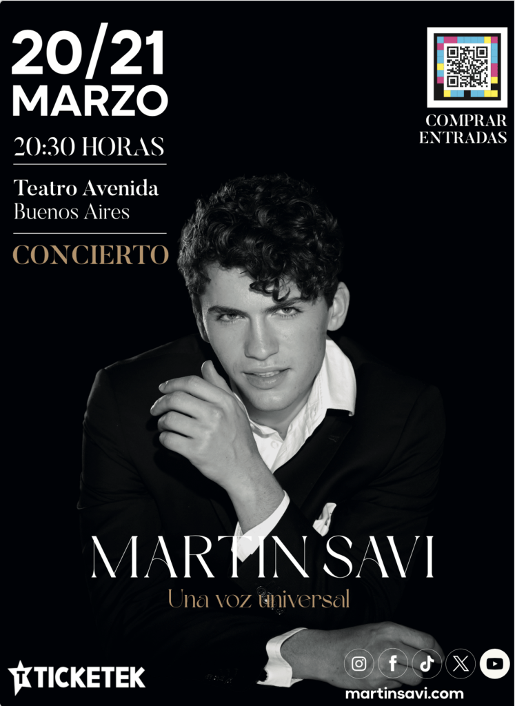 Tras un año de consagración absoluta en los escenarios más prestigiosos de Europa, el joven tenor argentino Martín Savi anuncia su esperado regreso a la calle Corrientes con el espectáculo “MARTÍN SAVI IN CONCERT – UNA VOZ UNIVERSAL”.