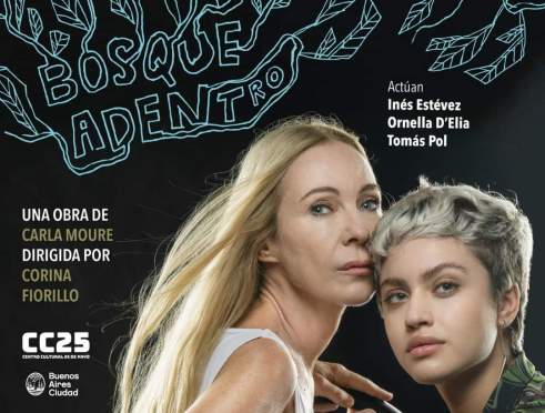 “Bosque adentro” es una historia de ruta, el viaje de una madre y su hija adolescente hacia Bariloche donde vive el abuelo enfermo. Las figuras masculinas, el pasado, la adolescencia hipermediatizada, la diferencia generacional, el amor familiar cargado, también, de rencor y silencio. Todo irá llenando este recorrido hacia el sur. Inés Estévez y Ornela D´Elia interpretan a esta madre y a esta hija que tan bien y tan mal (por momentos) se llevan. Registro cuasi- cinematográfico, réplicas rápidas y monólogos enunciados al público. A ambas las atraviesa la admiración por la otra, el abandono, el amor y el malestar.