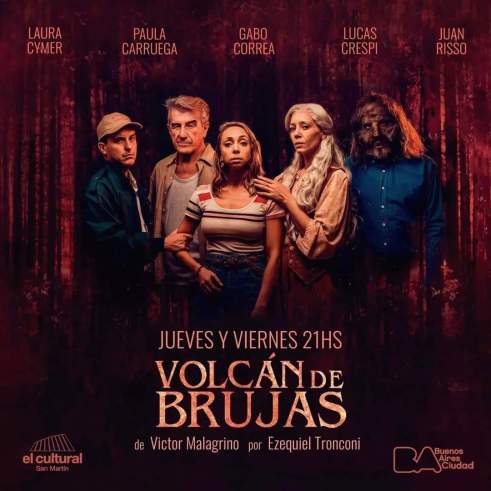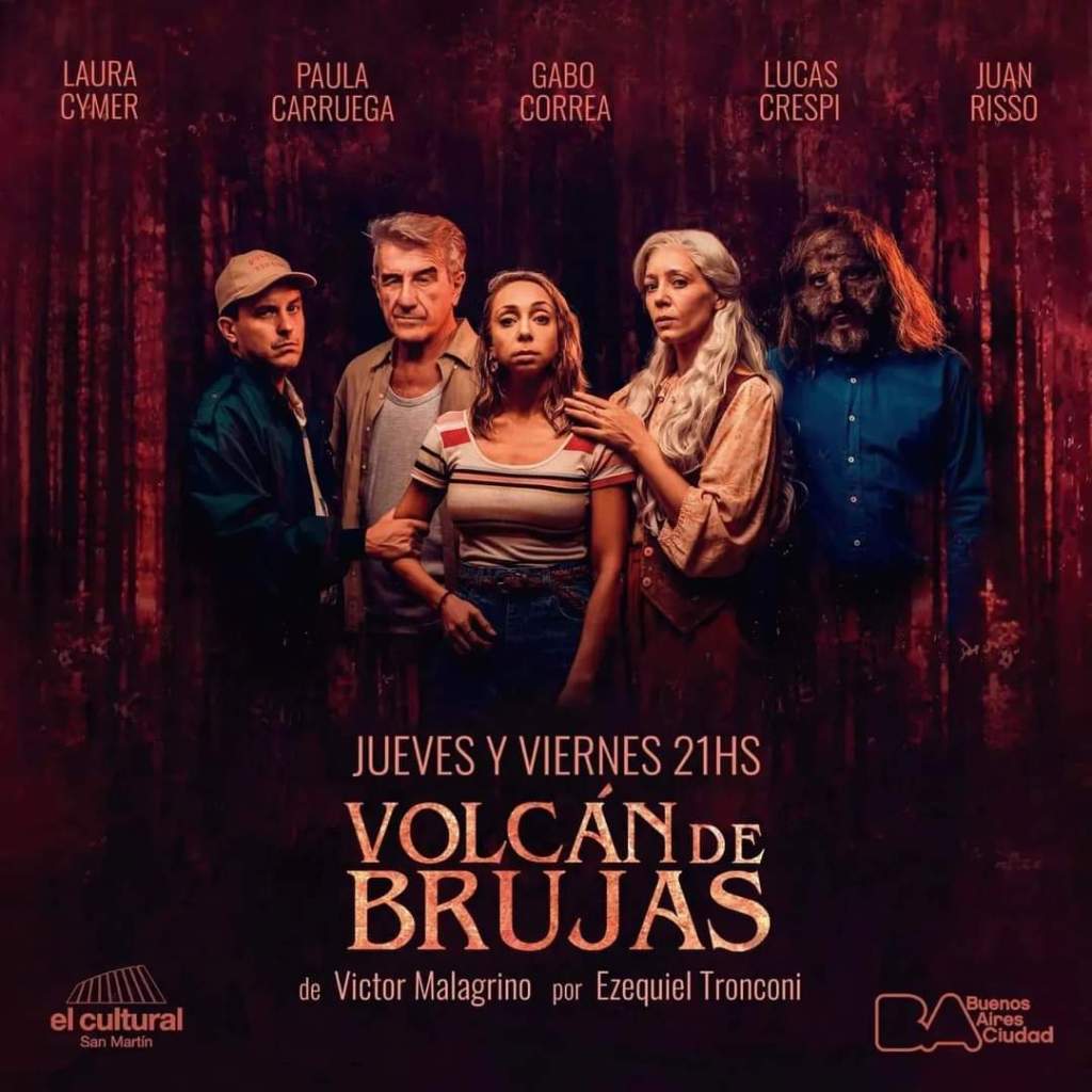 “Volcán de Brujas” de Víctor Malagrino, dirigida por Ezequiel Tronconi en El Cultural San Martin. Con un elenco conformado por Laura Cymer, Paula Carruega, Gabo Correa, Lucas Crespi y Juan Risso, la obra se presenta hasta el 19 de mayo los días jueves y viernes a las 21 hs. en la Sala 3 (Sarmiento 1551).