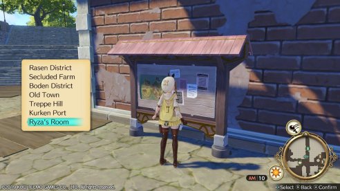 También contamos con varios accesos rápidos que facilitan la agilidad y fluidez durante el juego. El botón [-] nos permite viajar la base de operaciones de Ryza, donde podemos guardar el juego, descansar para adelantar el tiempo y practicar nuestra alquimia. El botón [+] despliega el menú de misiones, y la “X” nos permite acceder al inventario, el menú para equipar a nuestros personajes, la guía (una enciclopedia de todos los elementos, objetos y monstruos que vamos encontrando en el juego) y el menú de configuraciones, desde donde se puede cambiar la dificultad del juego, entre otras cosas.
